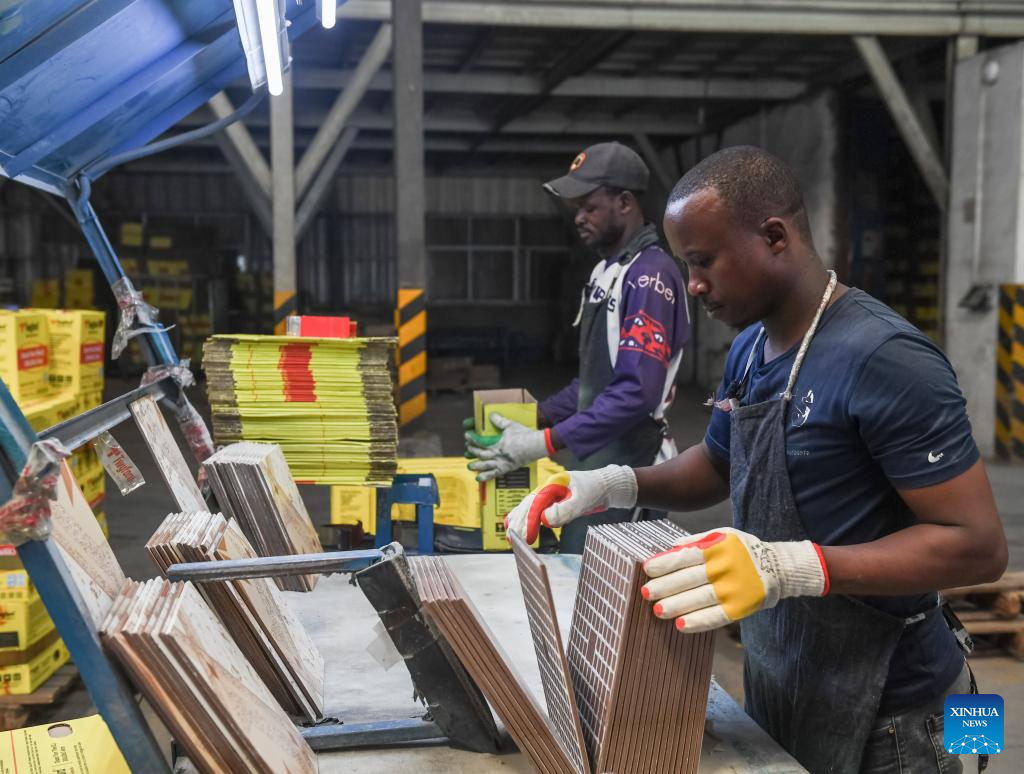 NAIROBI, June 3 (Xinhua) -- On a sunny afternoon, workers at KEDA (Kenya) Ceramics Company Limited, located about 70 kilometers south of the Kenyan capital of Nairobi, were busy with packing floor tiles in multicolored cartons for onward shipment to clients' premises.