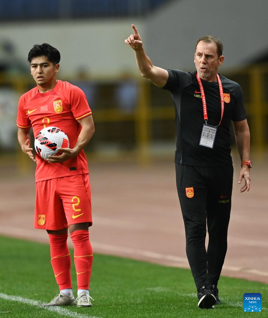 Dejan Djurdjevic (R), head coach of China, gestures during a friendly football match between the U19 teams of China and Vietnam in Weinan, northwest China's Shaanxi Province, June 4, 2024. (Xinhua/Zou Jingyi)