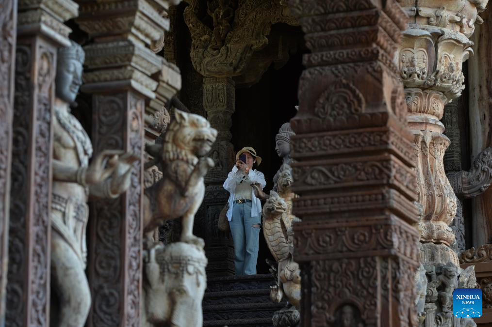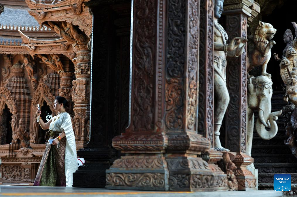 A tourist visits the Sanctuary of Truth museum in Pattaya, Chonburi province, Thailand, June 6, 2024. (Xinhua/Rachen Sageamsak)