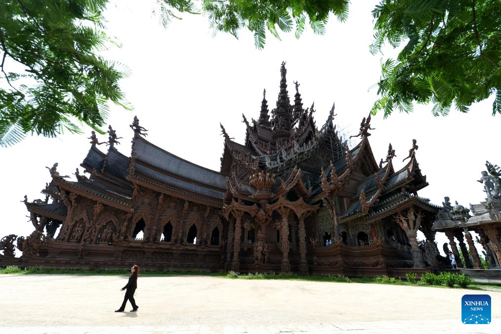 Tourists visit the Sanctuary of Truth museum in Pattaya, Chonburi province, Thailand, June 6, 2024. (Xinhua/Rachen Sageamsak)