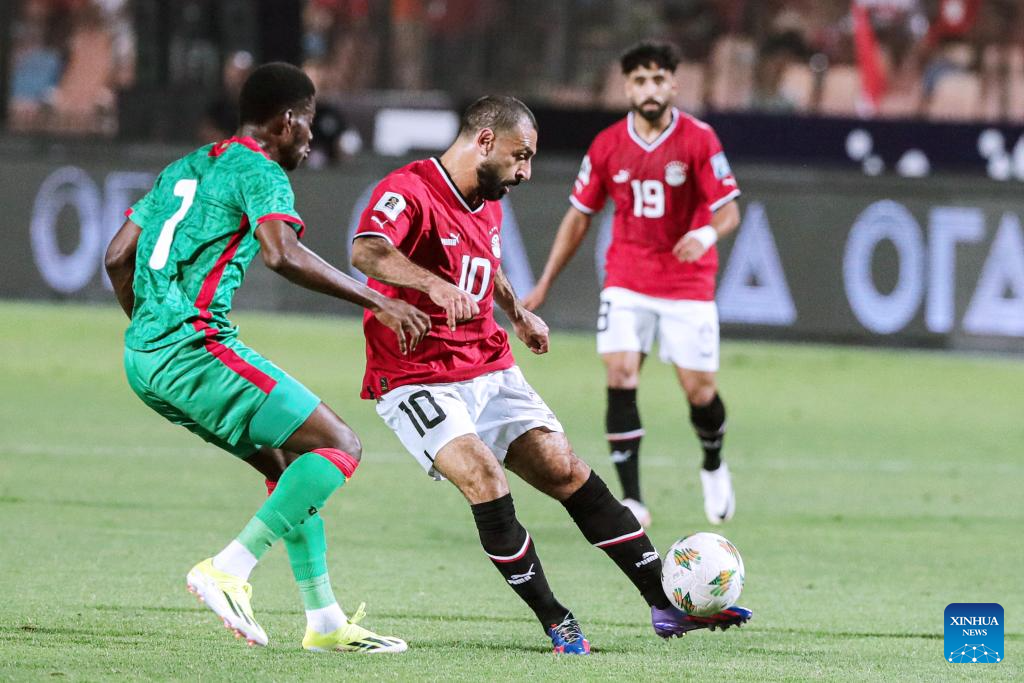 Mohamed Salah (C) of Egypt competes during the 2026 World Cup African qualifiers group A match between Egypt and Burkina Faso in Cairo, Egypt, June 6, 2024. (Xinhua/Ahmed Gomaa)