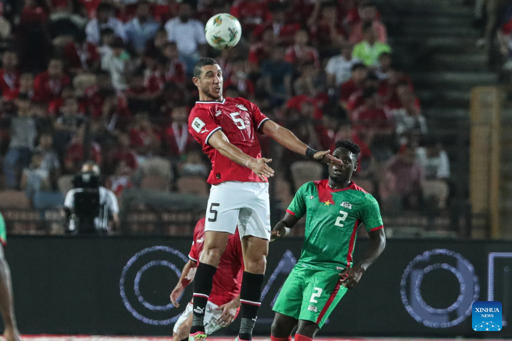 Emam Abdelghany (C) of Egypt competes during the 2026 World Cup African qualifiers group A match between Egypt and Burkina Faso in Cairo, Egypt, June 6, 2024. (Xinhua/Ahmed Gomaa)