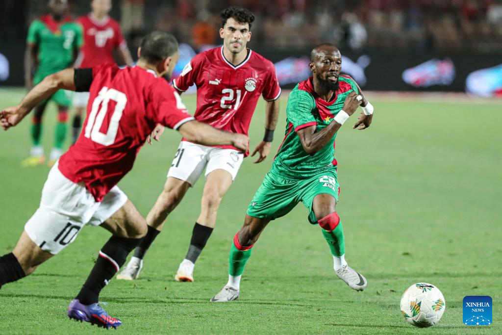 Mostafa Abdalla (C) of Egypt competes during the 2026 World Cup African qualifiers group A match between Egypt and Burkina Faso in Cairo, Egypt, June 6, 2024. (Xinhua/Ahmed Gomaa)