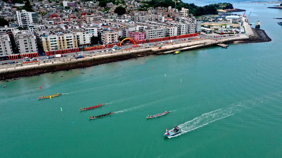 An examinee claps hands with a person dressed as a mascot sending best wishes at a national college entrance examination site in Nanjing, east China's Jiangsu Province, June 7, 2024. China's national college entrance examination, known as the Gaokao, started on Friday. (Xinhua/Li Bo)An aerial drone photo taken on June 7, 2024 shows a dragon boat race at sea in Lianjiang County, southeast China's Fujian Province. (Photo by Wang Wangwang/Xinhua)Ding Ding observes the crown of the Guest-Greeting Pine, a must-visit landmark on Huangshan Mountain, with a pair of binoculars in east China's Anhui Province, June 4, 2024. In 2016, Ding Ding became one of the guardians of the Guest-Greeting Pine, assisting Hu Xiaochun, the 19th guardian of the pine. They are not only colleagues, but also mentor and apprentice. Everyday, Ding Ding starts the patrol at 6:30 a.m. and conducts it every two hours, observing subtle changes in branches, leaves and bark, as well as the supporting frames and cables. He also uses the drone to survey the surrounding environment of the tree. (Xinhua/Zhou Mu)The AC311A civil helicopter undergoes a sling-load flight test in Lhasa, southwest China's Xizang Autonomous Region, May 24, 2024. China's independently-developed AC311A civil helicopter has successfully completed a major plateau sling-load flight test in Lhasa, according to the Aviation Industry Corporation of China (AVIC). (AVIC/Handout via Xinhua)This photo taken on April 3, 2024 shows the star trails seen from China Coast Guard vessel Huayang patrolling the waters of China's Ren'ai Jiao. In May 2024, China Coast Guard vessel Huayang returned to Sanya City of south China's Hainan Province after completing a patrol task in the waters of China's Ren'ai Jiao. During this round of patrol, the law enforcers worked continuously for weeks in a high temperature, high humidity and high salinity environment, firmly safeguarding China's territorial sea. (Xinhua/Pu Xiaoxu)A new Chinese-built high-speed train is unveiled in Belgrade, Serbia, June 7, 2024. The new Chinese-built high-speed train was unveiled in Belgrade on Friday during a ceremony attended by Serbian President Aleksandar Vucic. Vucic announced at the ceremony at Zemun train station that Serbia has ordered five trains from the China Railway Rolling Stock Corporation (CRRC), for passenger transport along the soon-to-be-completed Serbian section of the Belgrade-Budapest railway. The new train has 250 seats and can reach a speed of up to 200 km per hour. (Photo by Ren Weiyun/Xinhua)This photo taken on June 7, 2024 shows the Summer Night Concert presented by the Vienna Philharmonic at the park of Schoenbrunn Palace in Vienna, Austria. The Summer Night Concert 2024 was staged here by the Vienna Philharmonic on Friday. (Xinhua/He Canling)People watch the Olympic rings on the Eiffel Tower, in Paris, France, June 7, 2024. The Olympics rings are unveiled on the Eiffel Tower early in the morning of Friday as the French capital marks 50 days until the start of the upcoming Paris 2024 Olympic Games. (Xinhua/Gao Jing)■