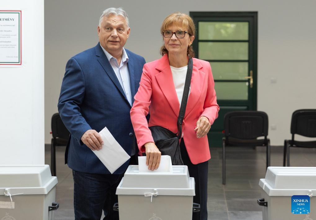 Hungarian Prime Minister Viktor Orban and his wife vote for the European Parliament elections at a polling station in Budapest, Hungary, June 9, 2024. (Photo by Attila Volgyi/Xinhua)