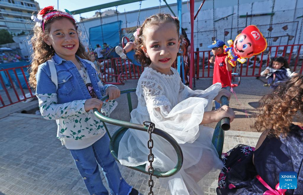 Children have fun at an amusement park during the Eid al-Adha holiday in Beirut, Lebanon, June 16, 2024. (Xinhua/Bilal Jawich)