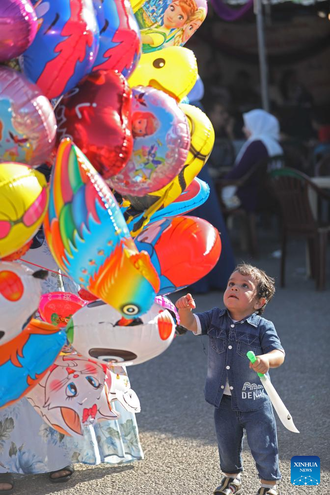 A child has fun at an amusement park during the Eid al-Adha holiday in Beirut, Lebanon, June 16, 2024. (Xinhua/Bilal Jawich)