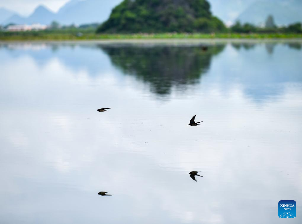 Birds fly at the Puzhehei national wetland park in Qiubei County of southwest China's Yunnan Province, June 18, 2024. (Xinhua/Wang Jingyi)