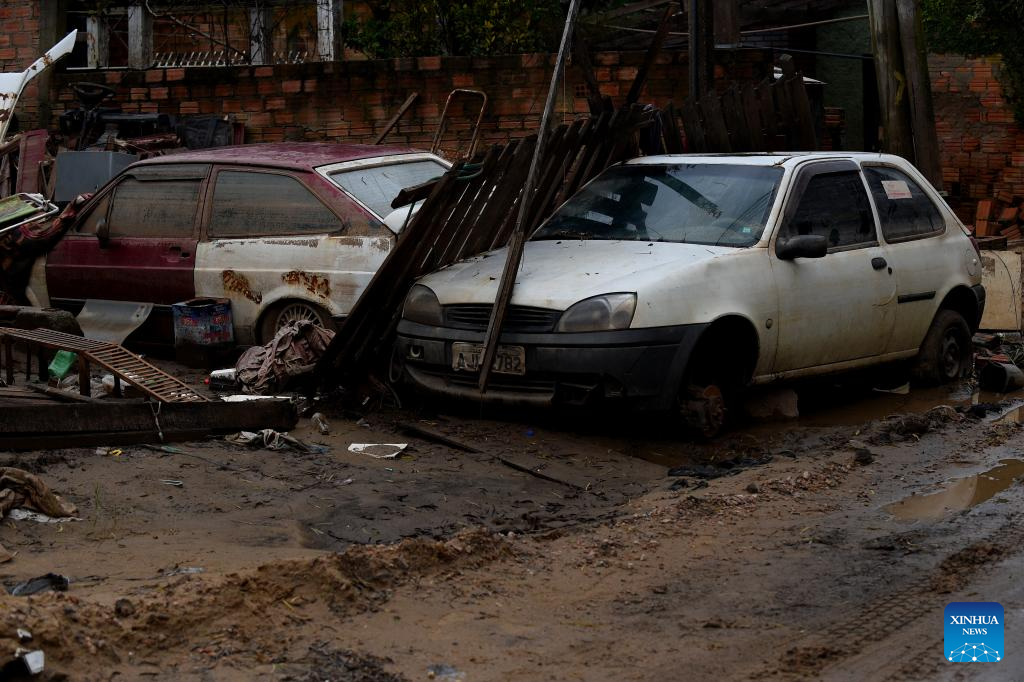 This photo taken on June 18, 2024 shows damaged vehicles in Porto Alegre, Rio Grande do Sul, Brazil. Continuous heavy rains in the state have killed 177 people and left 37 missing. (Photo by Lucio Tavora/Xinhua)