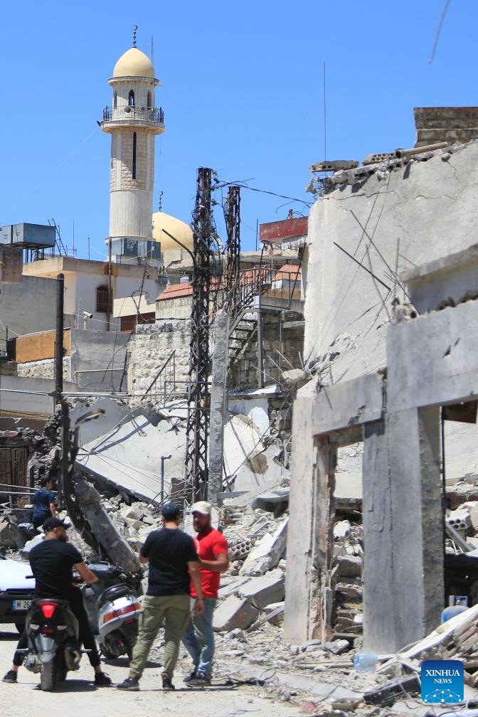 This photo taken on June 21, 2024 shows buildings destroyed by Israeli airstrikes in Yaroun, Lebanon. Three Hezbollah members, including a local official, were killed and four civilians wounded on Wednesday in Israeli airstrikes on Lebanese villages, Lebanese military sources told Xinhua.
