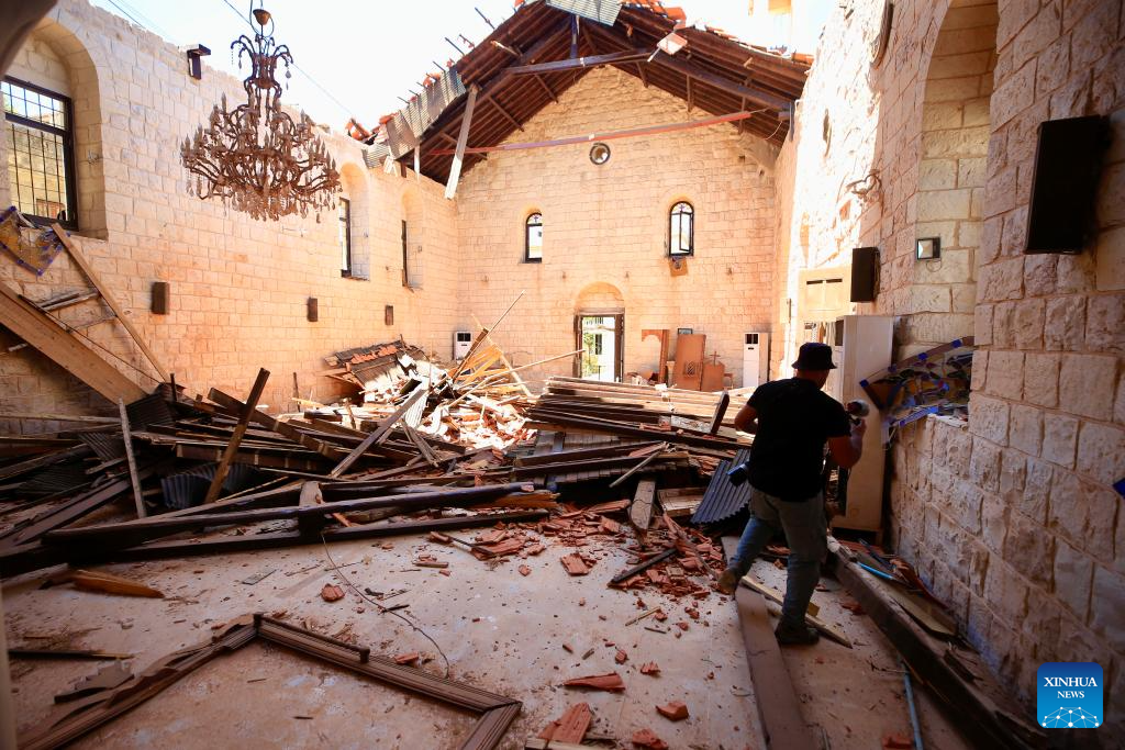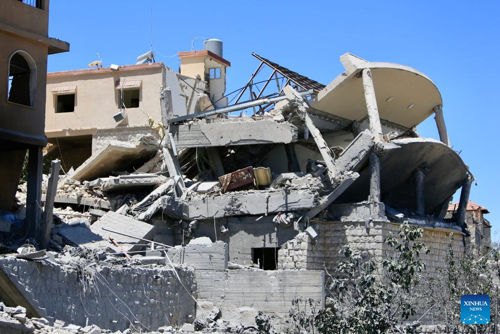 This photo taken on June 21, 2024 shows a building destroyed by Israeli airstrikes in Yaroun, Lebanon. Three Hezbollah members, including a local official, were killed and four civilians wounded on Wednesday in Israeli airstrikes on Lebanese villages, Lebanese military sources told Xinhua.