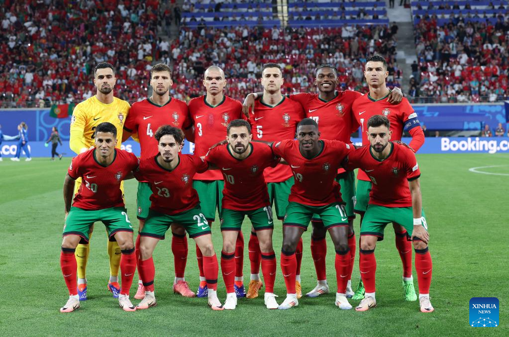 Players of Portugal line up before the UEFA Euro 2024 Group F match between Portugal and the Czech Republic in Leipzig, Germany on June 18, 2024. (Xinhua/Bai Xuefei)