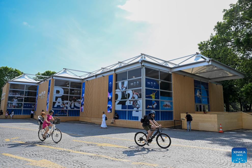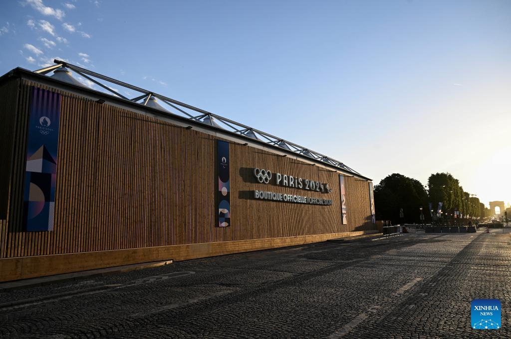 Photo taken on June 27, 2024 shows the exterior view of the Paris 2024 official store on the Champs-Elysees Avenue in Paris, France. (Xinhua/He Changshan)