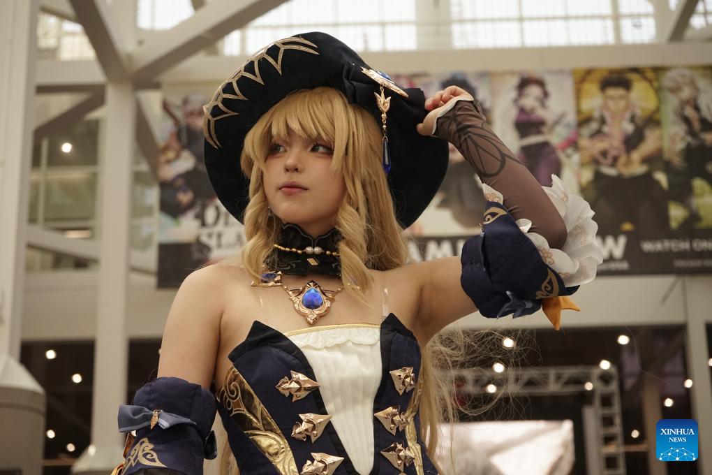 An anime fan dressed up as comic and animation character poses for photos during the Anime Expo 2024 at the Los Angeles Convention Center in Los Angeles, the United States, on July 4, 2024. The 4-day event was launched at the Los Angeles Convention Center in Los Angeles on Thursday and will run until July 7. (Photo by Zeng Hui/Xinhua)