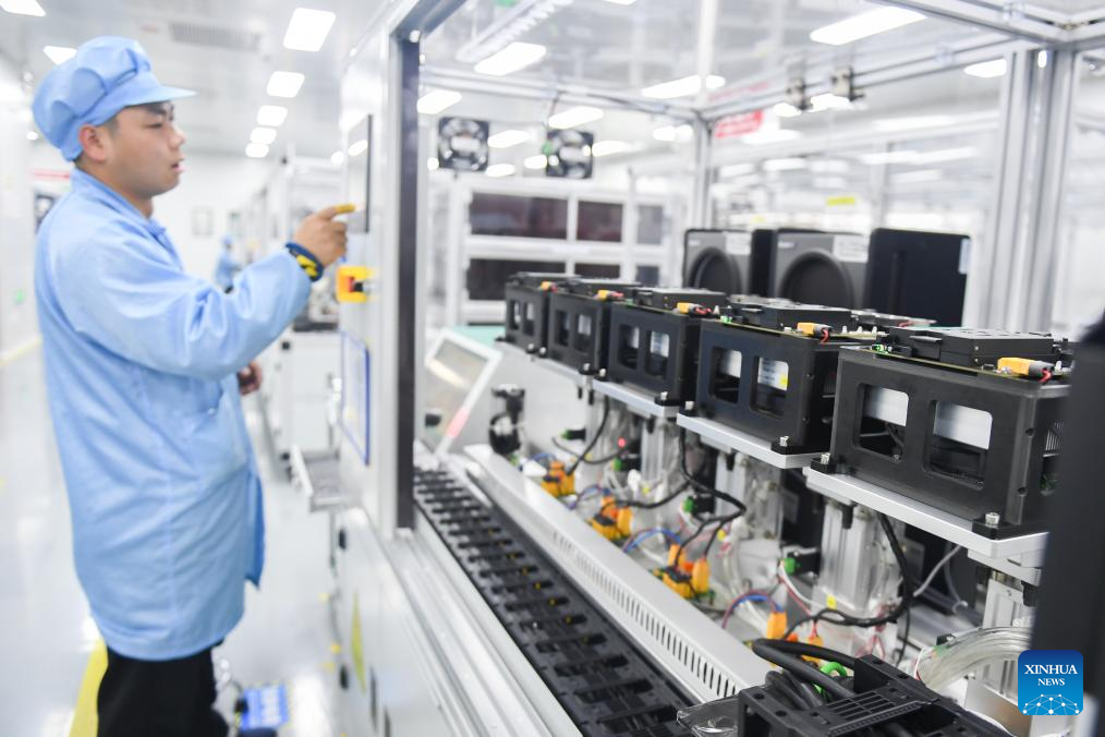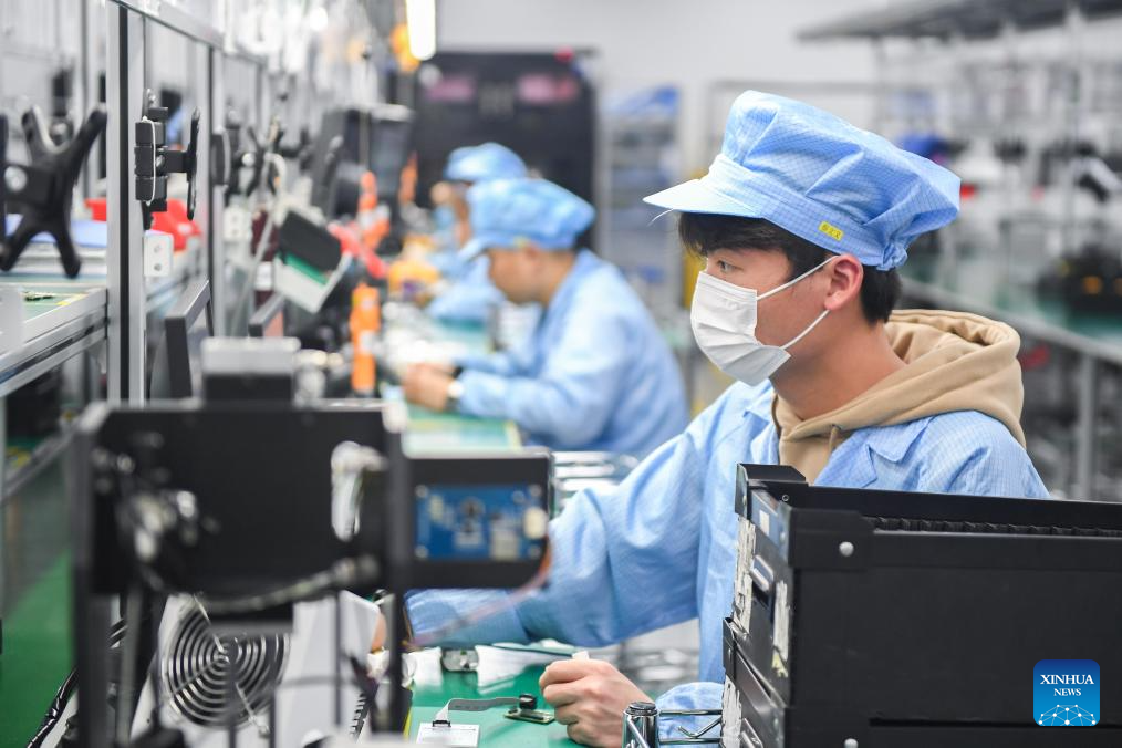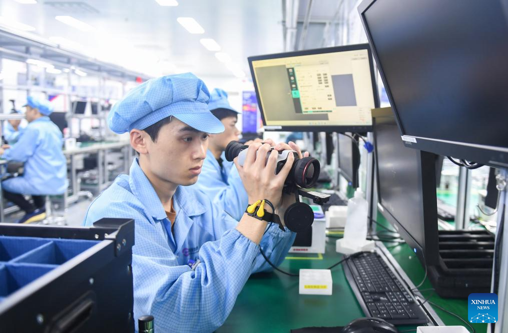 Staff members work on a production line of infrared thermal imagers at Guide Infrared Group in Wuhan, central China's Hubei Province, Feb. 28, 2024. Wuhan East Lake High-tech Development Zone, also known as the optics valley of China, is the birthplace of China's first optical fiber and a national optoelectronic information industry base. In recent years, Hubei Province has made major breakthroughs in the development of optoelectronic information industry and accelerated the building of optoelectronic information industry clusters. (Xinhua/Du Zixuan)