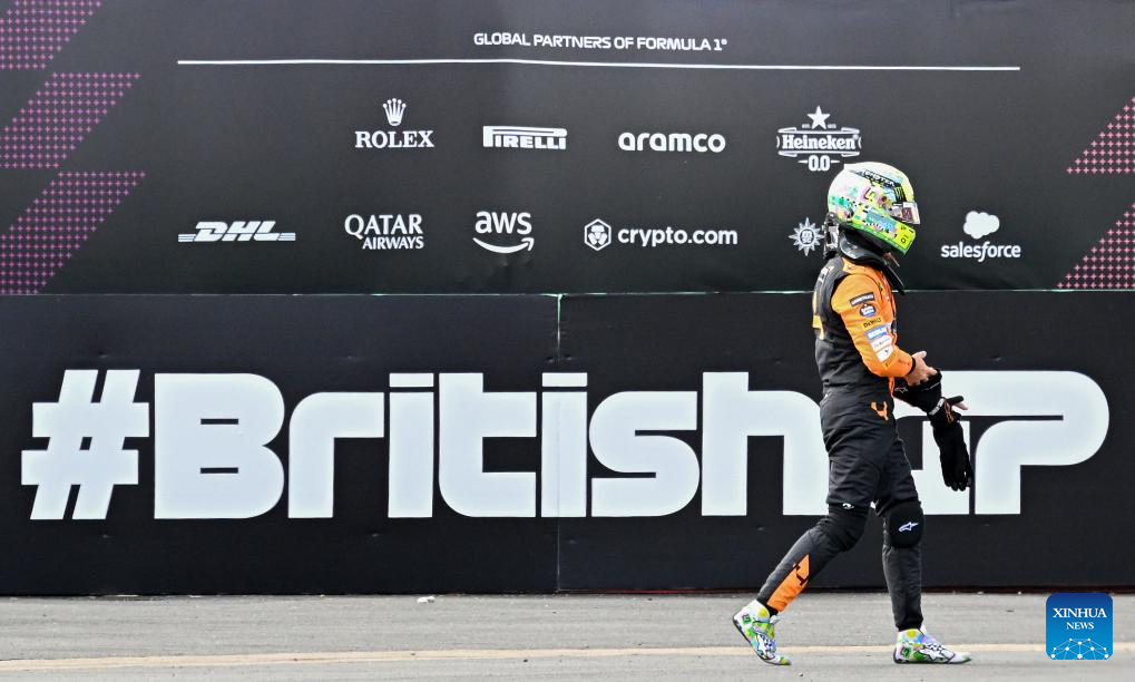 McLaren's British driver Lando Norris heads to pits after the qualifying session of the 2024 Formula One British Grand Prix at the Silverstone Circuit, Britain, July 6, 2024. (Xinhua/Wu Lu)