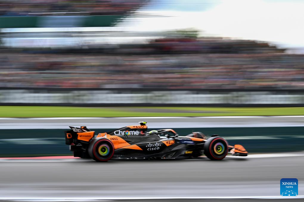 McLaren's British driver Lando Norris competes during the qualifying session of the 2024 Formula One British Grand Prix at the Silverstone Circuit, Britain, July 6, 2024. (Xinhua/Wu Lu)