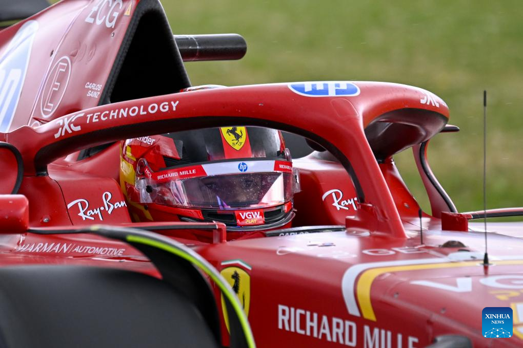 Ferrari's Spanish driver Carlos Sainz Jr. competes during the qualifying session of the 2024 Formula One British Grand Prix at the Silverstone Circuit, Britain, July 6, 2024. (Xinhua/Wu Lu)
