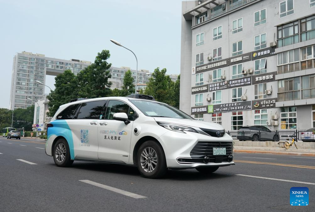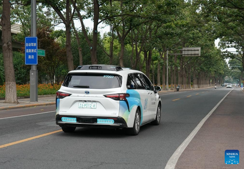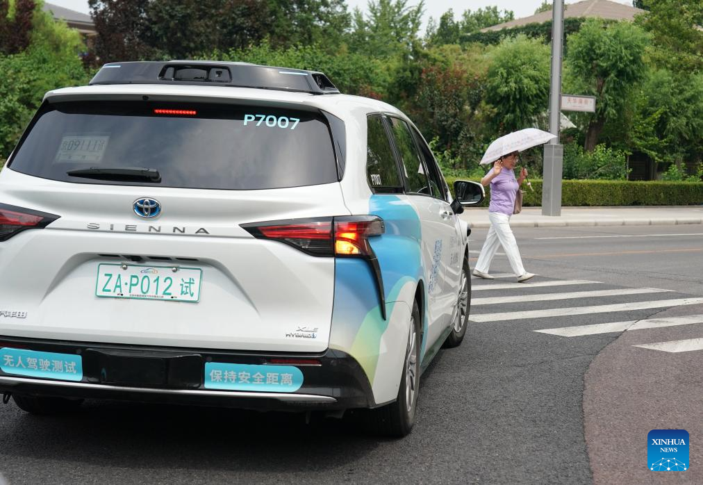 An autonomous vehicle undergoes road testing at an autonomous driving demonstration area in Yizhuang in Beijing, capital of China, June 19, 2024.