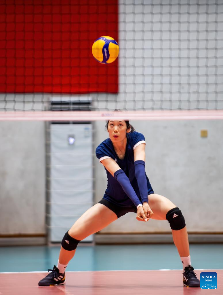 Zhu Ting of the Chinese national women's volleyball team attends a training session in preparation for the Paris 2024 Olympics in Zhangzhou, southeast China's Fujian Province, July 13, 2024. (Xinhua/Wei Peiquan)