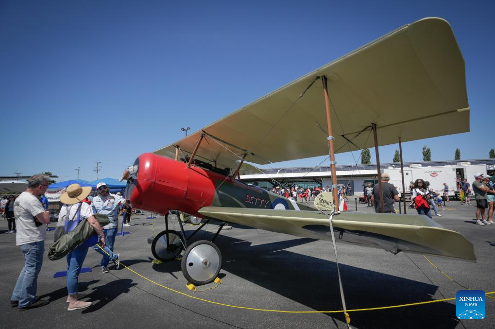 People view a light sport aircraft at the 2024 Boundary Bay Airshow in Delta, British Columbia, Canada, on July 13, 2024.