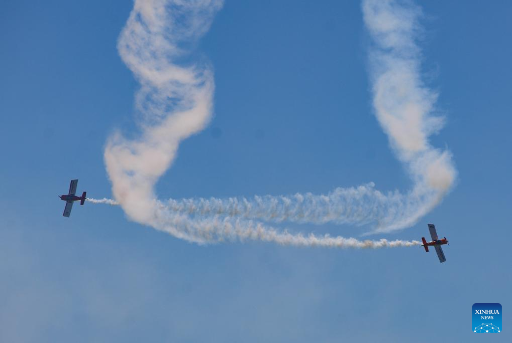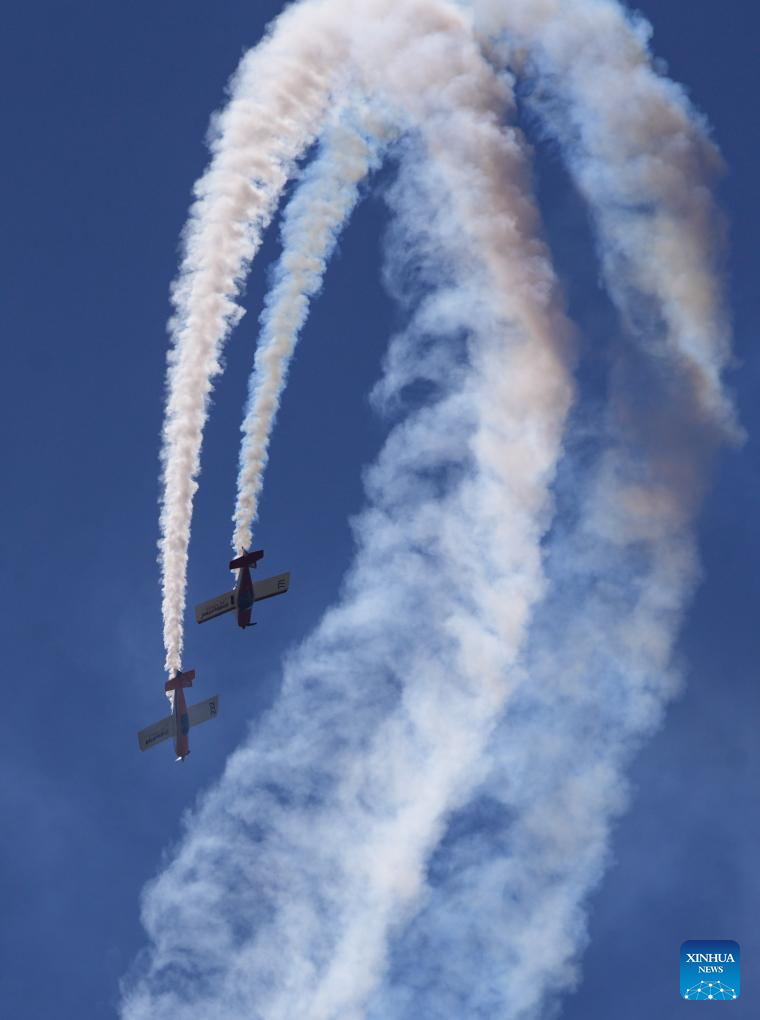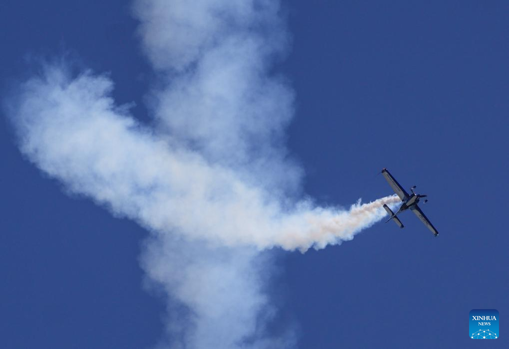 This annual airshow opened here on Saturday, featuring aerobatic performances and static displays of both modern and vintage airplanes. (Photo by Liang Sen/Xinhua)