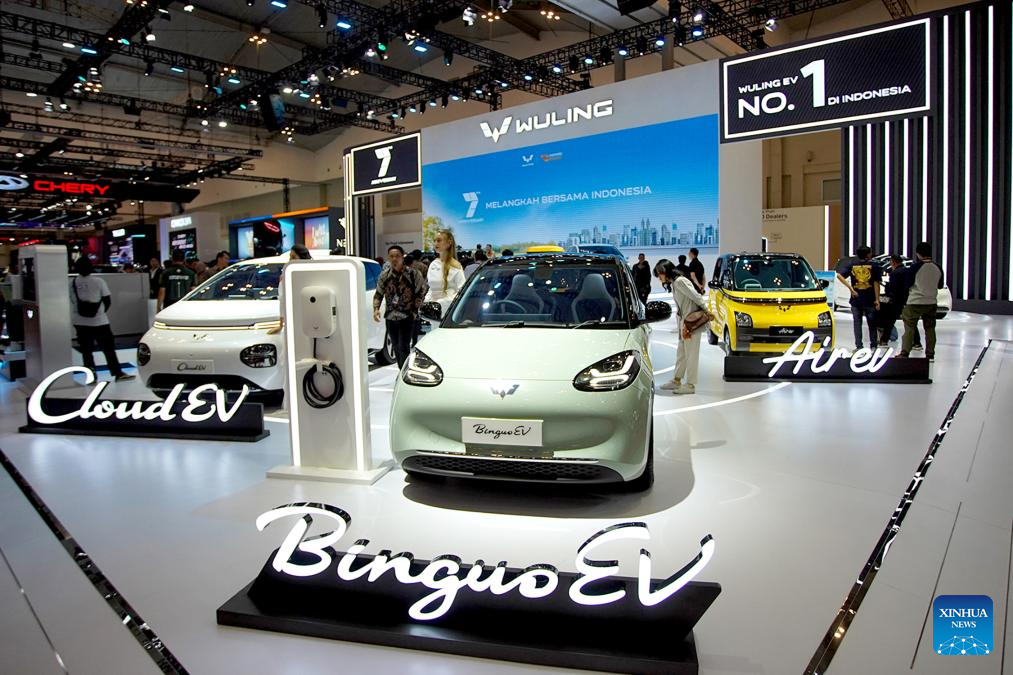 Visitors look at vehicles displayed during media preview of the GAIKINDO Indonesia International Auto Show (GIIAS) 2024 in Tangerang of Banten province, Indonesia, July 17, 2024. The GIIAS 2024 will open to the public from July 18 to July 28. (Photo by Gemma Galgani/Xinhua)