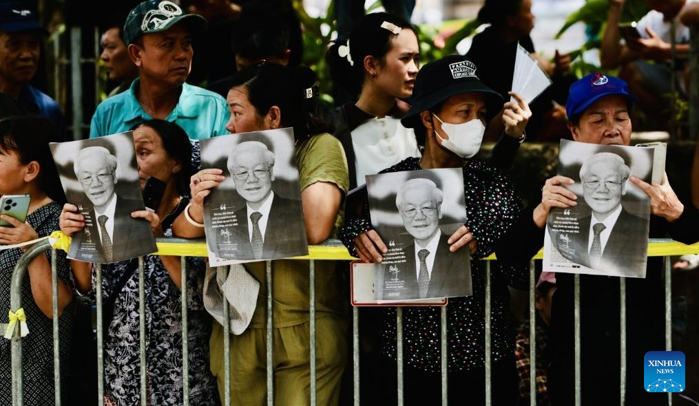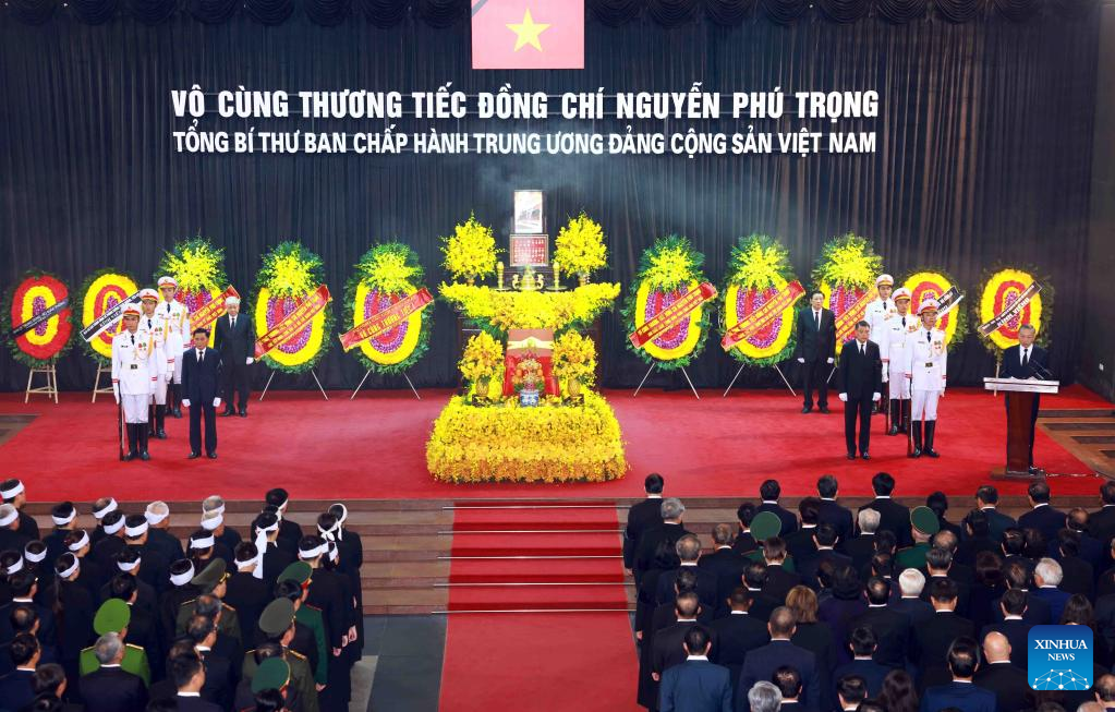 HANOI, July 26 (Xinhua) -- A memorial service and a burial ceremony were held in the Vietnamese capital on Friday for the late General Secretary of the Communist Party of Vietnam (CPV) Central Committee Nguyen Phu Trong.