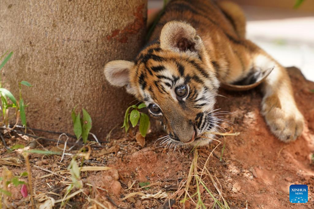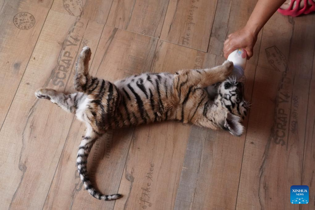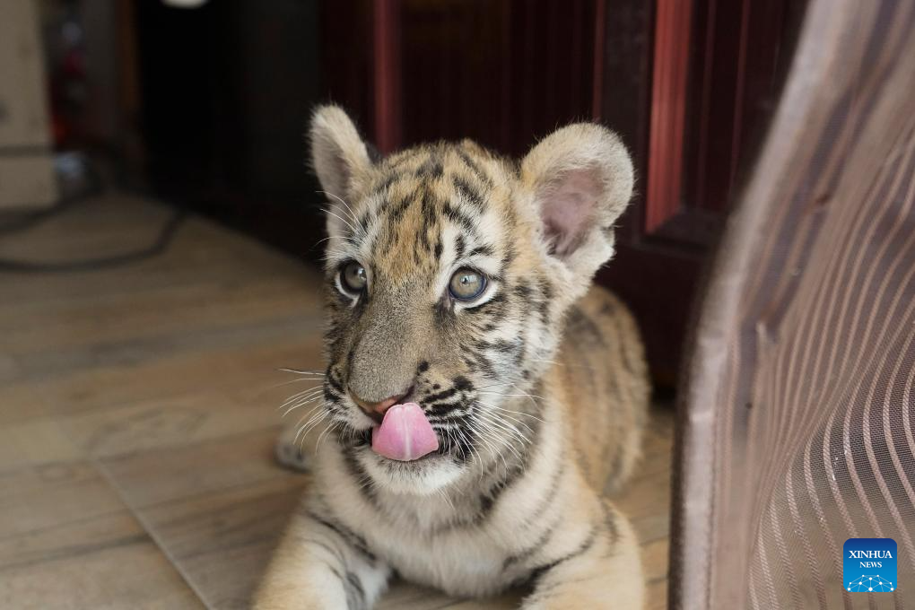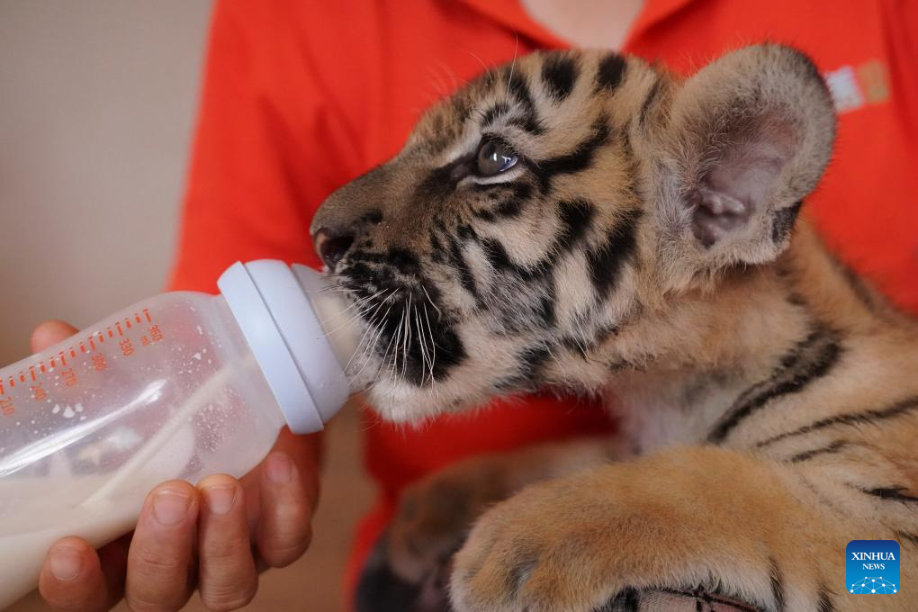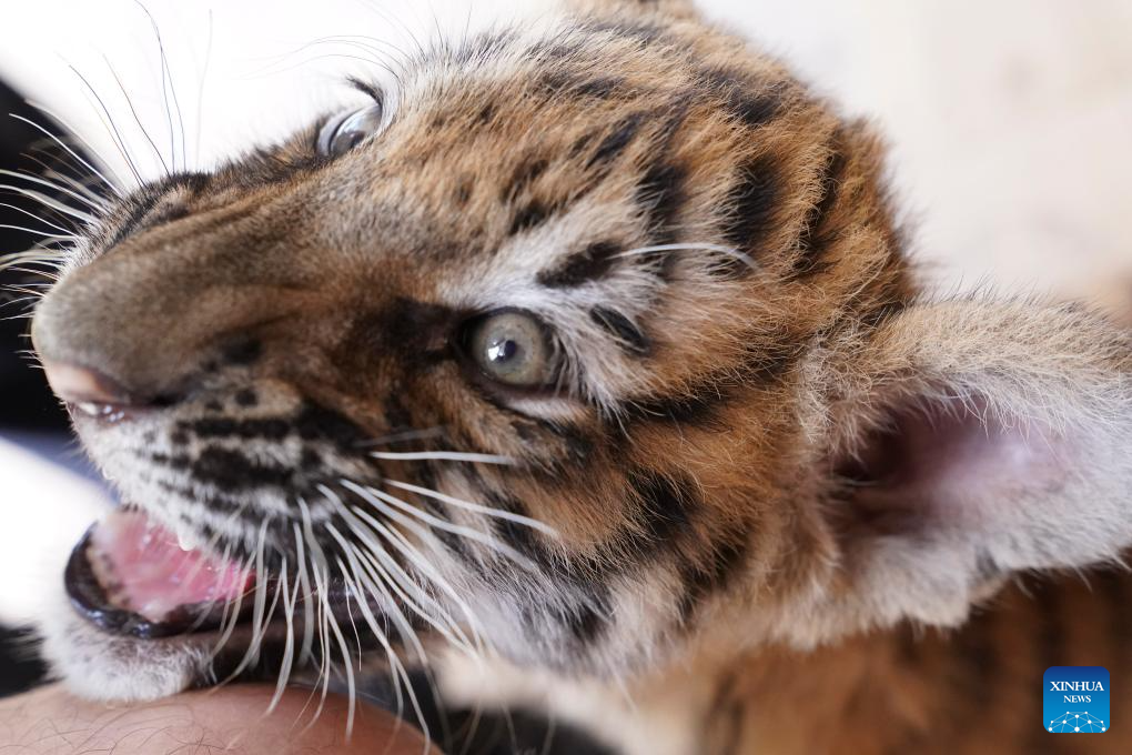 Four Siberian tigers have been successfully bred since May this year at the wildlife zoo. These cubs are in good health condition and will soon meet the public. The zoo has successfully bred 24 Siberian tigers since its establishment in 2018. (Xinhua/Zhou Mi)