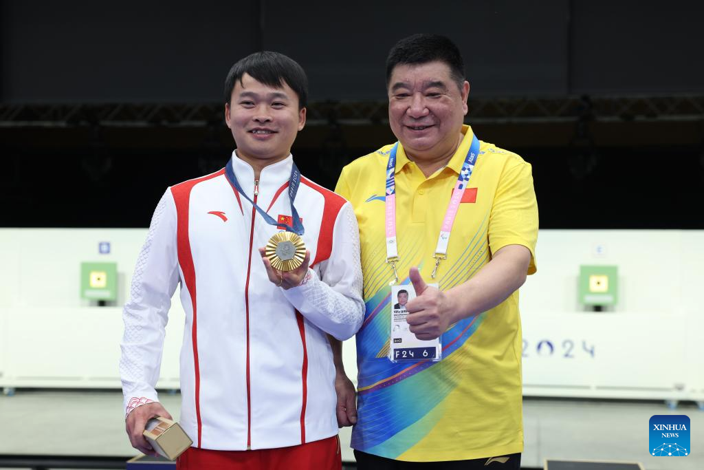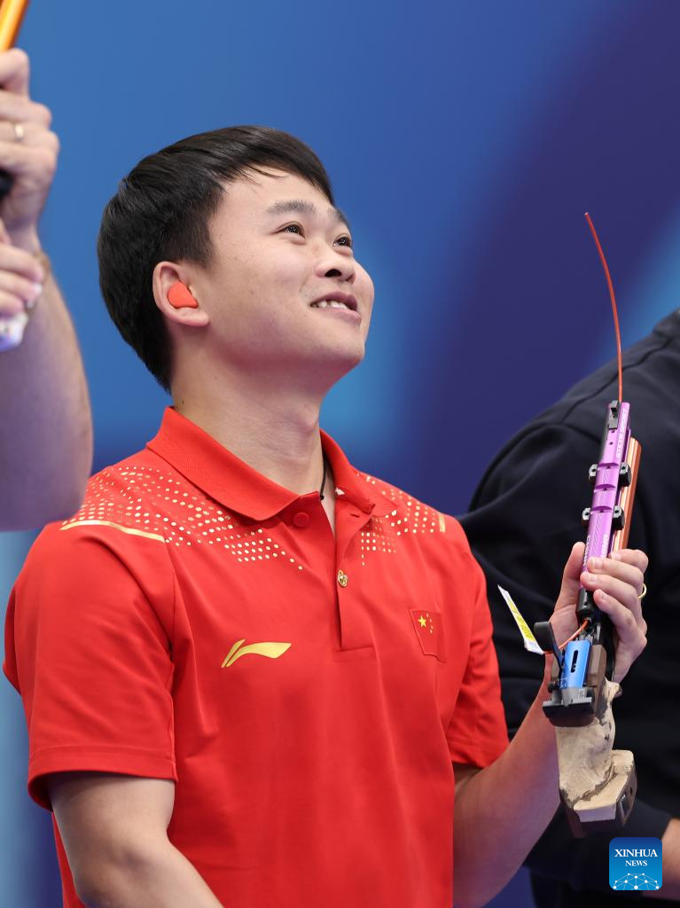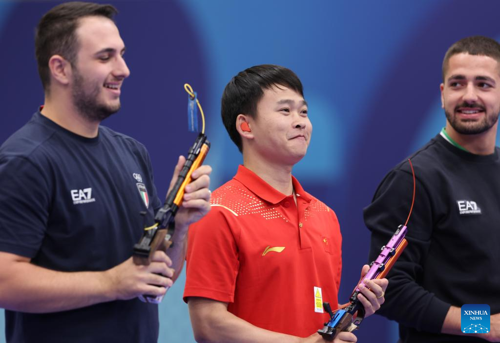 CHATEAUROUX, FRANCE, July 28 (Xinhua) -- Chinese sharpshooter Xie Yu clinched gold in the men's 10m air pistol event here at the Paris Olympics on Sunday.