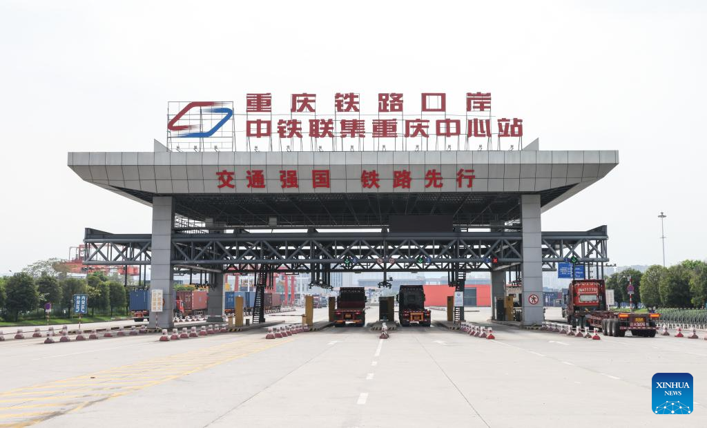 As many international logistics channels converge in Chongqing, the mountainous city is leveraging its connectivity, playing a strategic fulcrum role and transforming into a crucial highland for opening up. (Xinhua/Lyu Shuai)