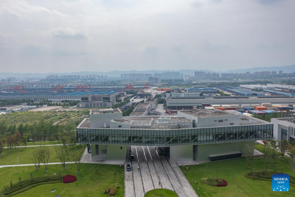 An aerial drone photo taken on July 30, 2024 shows the Chongqing International Logistics Hub Park in Shapingba District of Chongqing, southwest China.