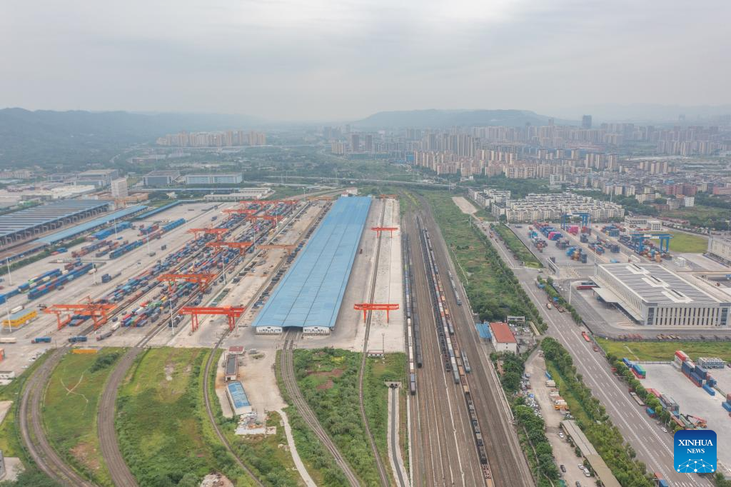 This photo taken on July 30, 2024 shows the Chongqing Railway Port at the Chongqing International Logistics Hub Park in Shapingba District of Chongqing, southwest China.