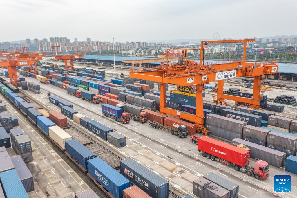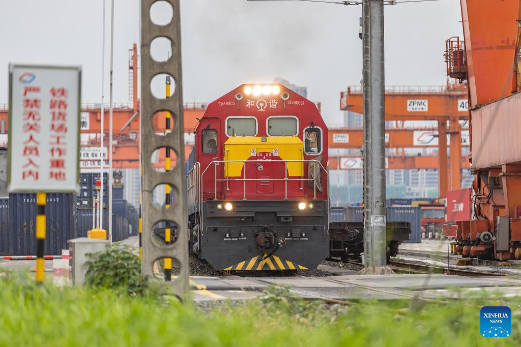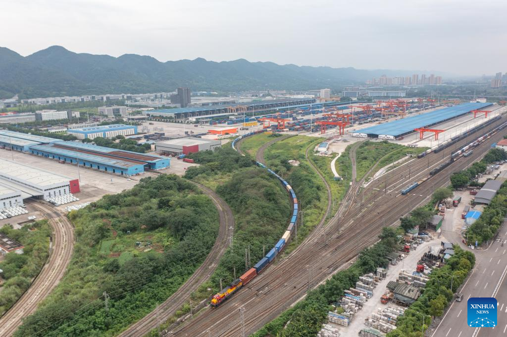 A China-Europe freight train departs from the Tuanjiecun Station of Chongqing International Logistics Hub Park in Shapingba District of Chongqing, southwest China, July 30, 2024.