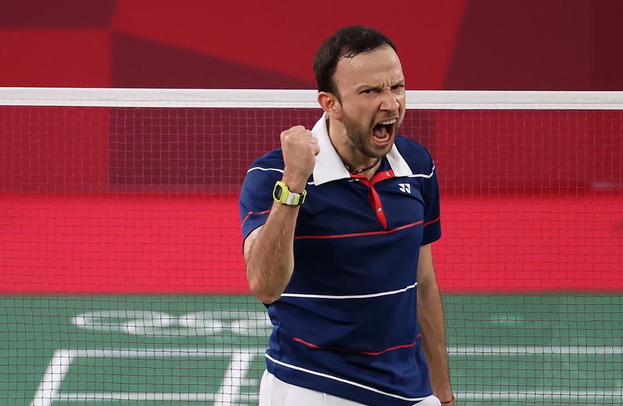 PARIS, Aug. 1 (Xinhua) -- The vibrant atmosphere at the Porte de la Chapelle Arena on Wednesday night bore witness to an inspiring moment in Olympic badminton. Singapore's 10th-seed, Loh Kean Yew, clinched victory with a deft shot to the baseline, concluding Uriel Francisco Canjura Artiga's journey in the Paris Olympics.