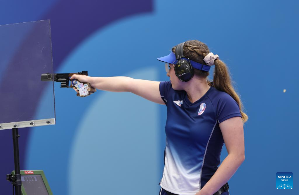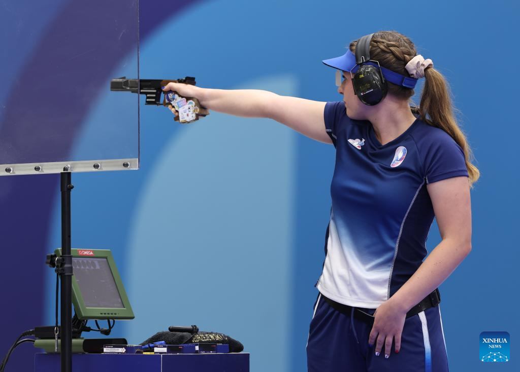Camille Jedrzejewski of France competes during the 25m pistol women's final of shooting at the Paris 2024 Olympic Games in Chateauroux, France, Aug. 3, 2024. (Xinhua/Zhang Fan)