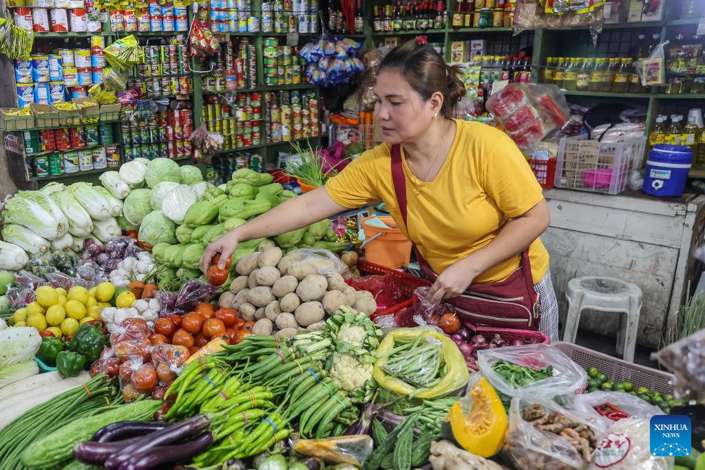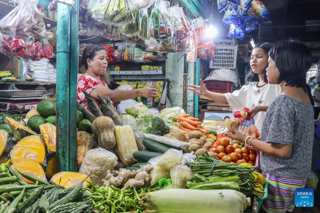 Customers shop at a market in Quezon City, the Philippines, Aug. 6, 2024. The Philippines' headline inflation in July has reached its highest rate so far this year, accelerating to 4.4 percent in July from 3.7 percent in June, the Philippine Statistics Authority (PSA) said Tuesday. (Xinhua/Rouelle Umali)