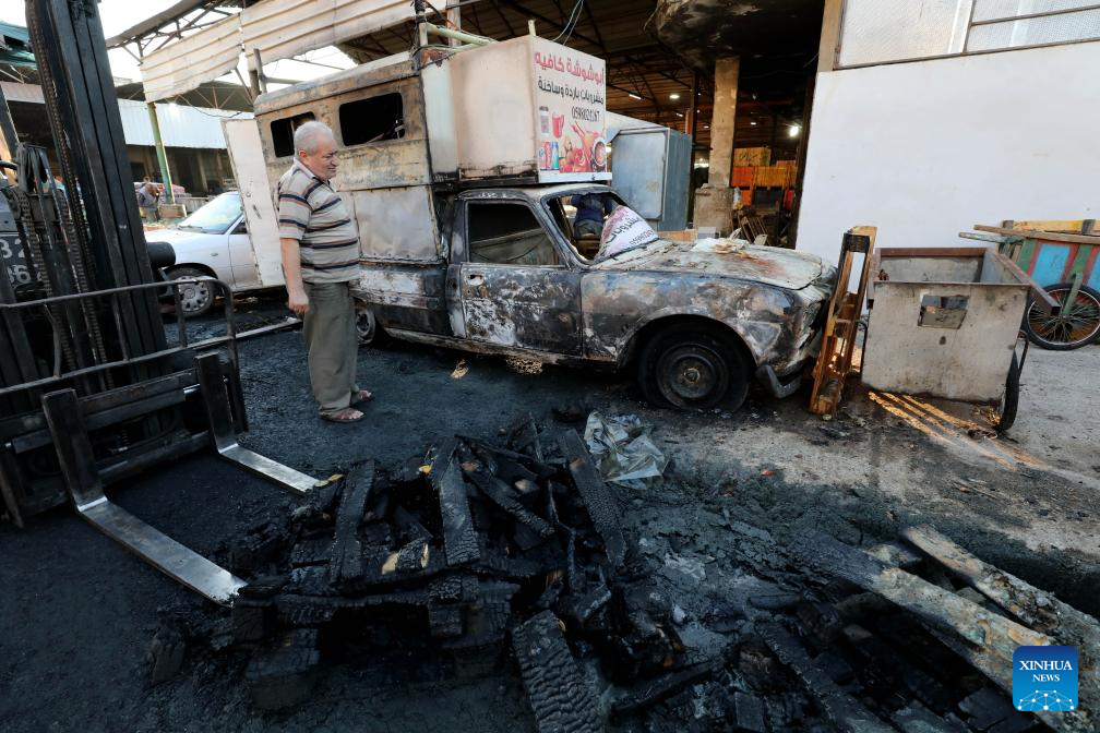 A man inspects a warehouse damaged during clashes between Palestinian protesters and Israeli settlers in the West Bank city of Nablus, on Aug. 5, 2024. (Photo by Nidal Eshtayeh/Xinhua)