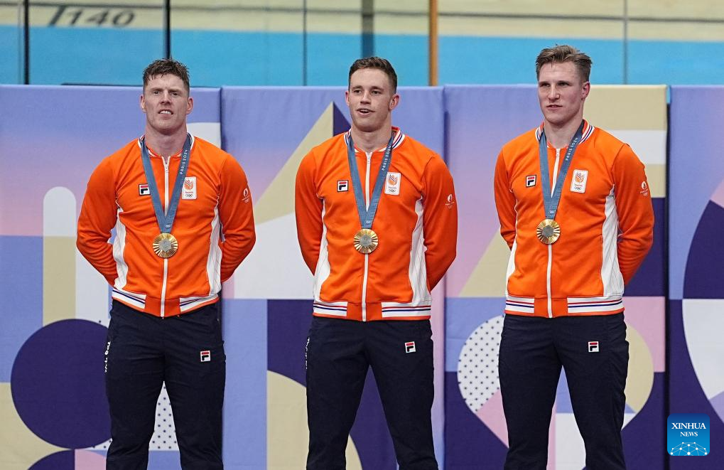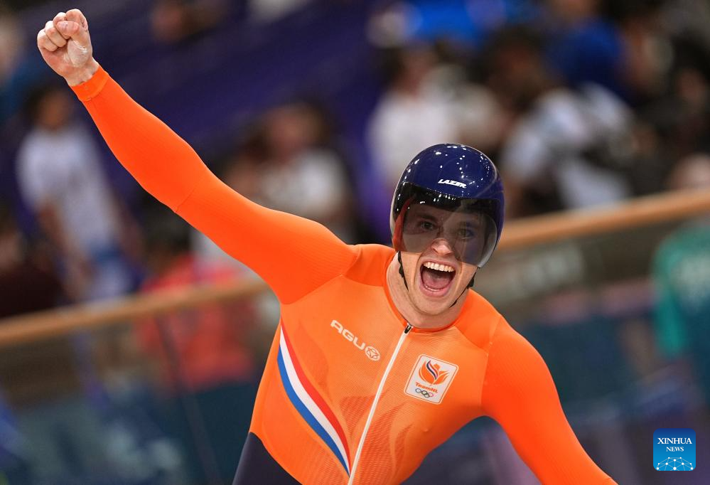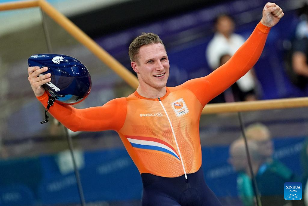 PARIS, Aug. 6 (Xinhua) -- The Netherlands men's team sprint trio set a new world record of 40.949 seconds to win Olympic gold as they beat Britain in the final at the Quentin-en-Yvelines Velodrome on Tuesday evening in front of a sea of orange shirts.