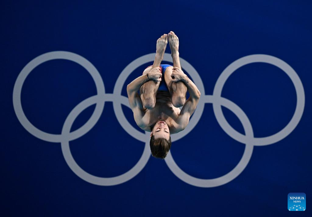 Jordan Christopher Houlden of Great Britain competes during the men's 3m springboard semifinal of diving at the Paris 2024 Olympic Games in Saint-Denis, France, Aug. 7, 2024. (Xinhua/Wang Peng)