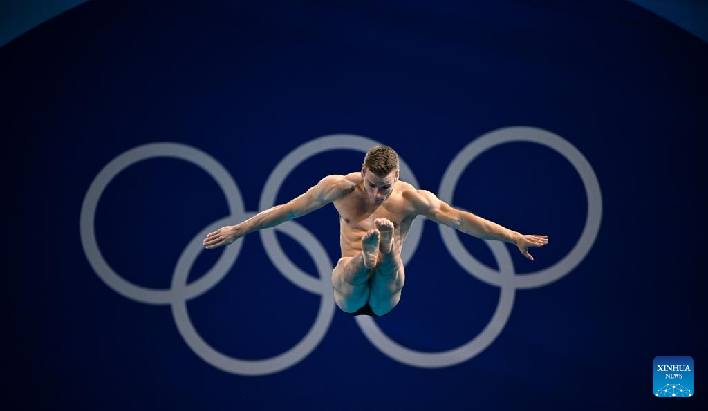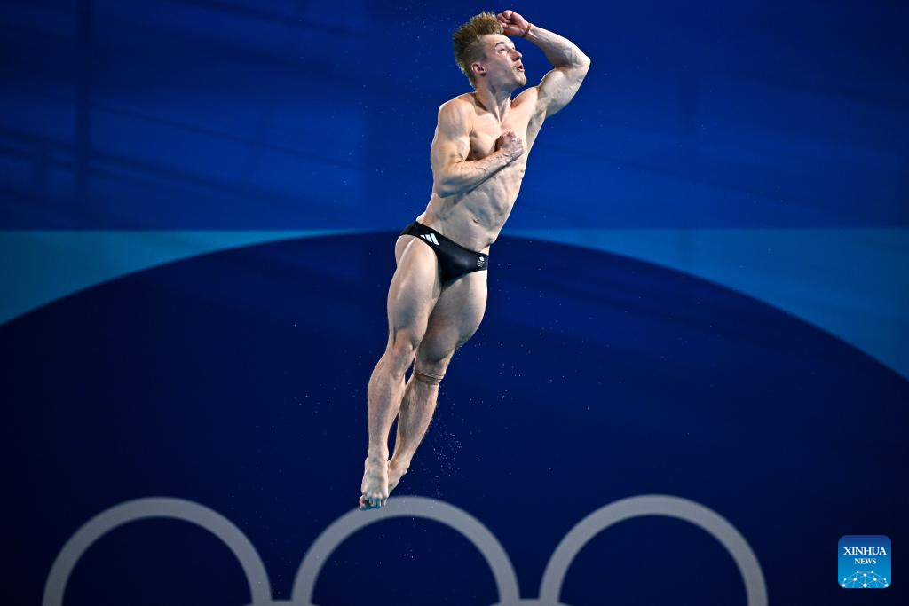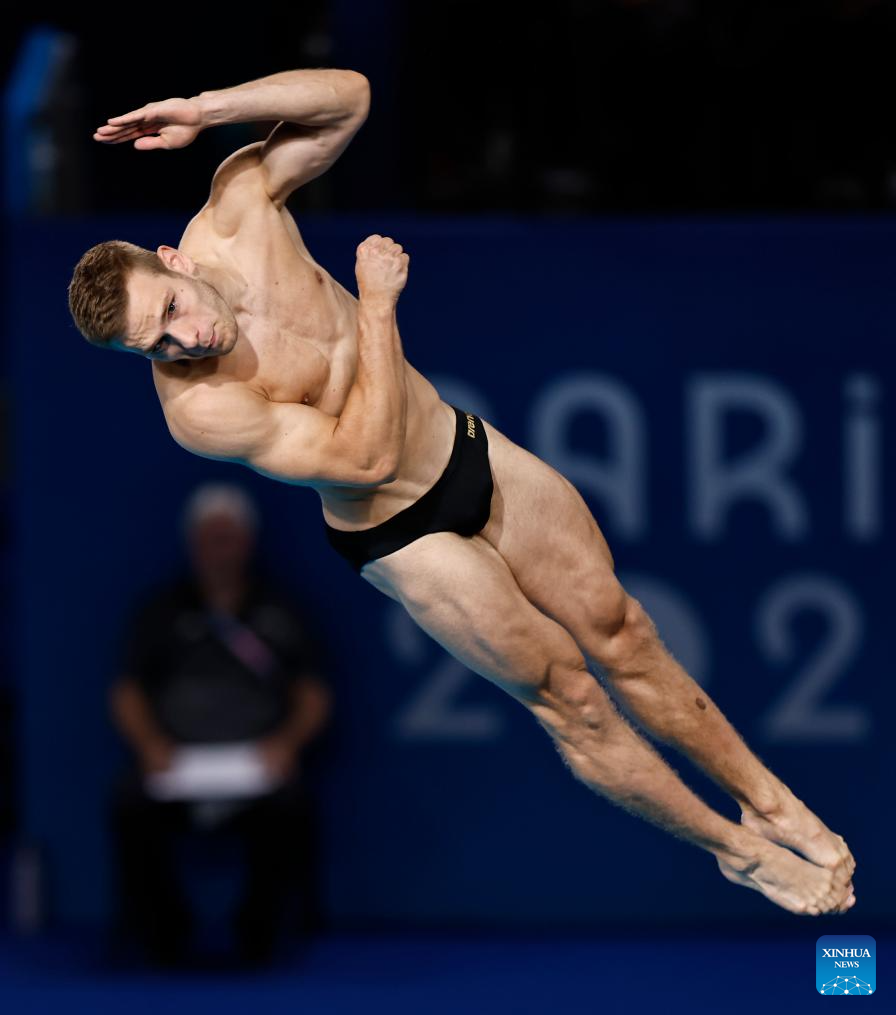 Moritz Wesemann of Germany competes during the men's 3m springboard semifinal of diving at the Paris 2024 Olympic Games in Saint-Denis, France, Aug. 7, 2024. (Xinhua/Zhang Yuwei)