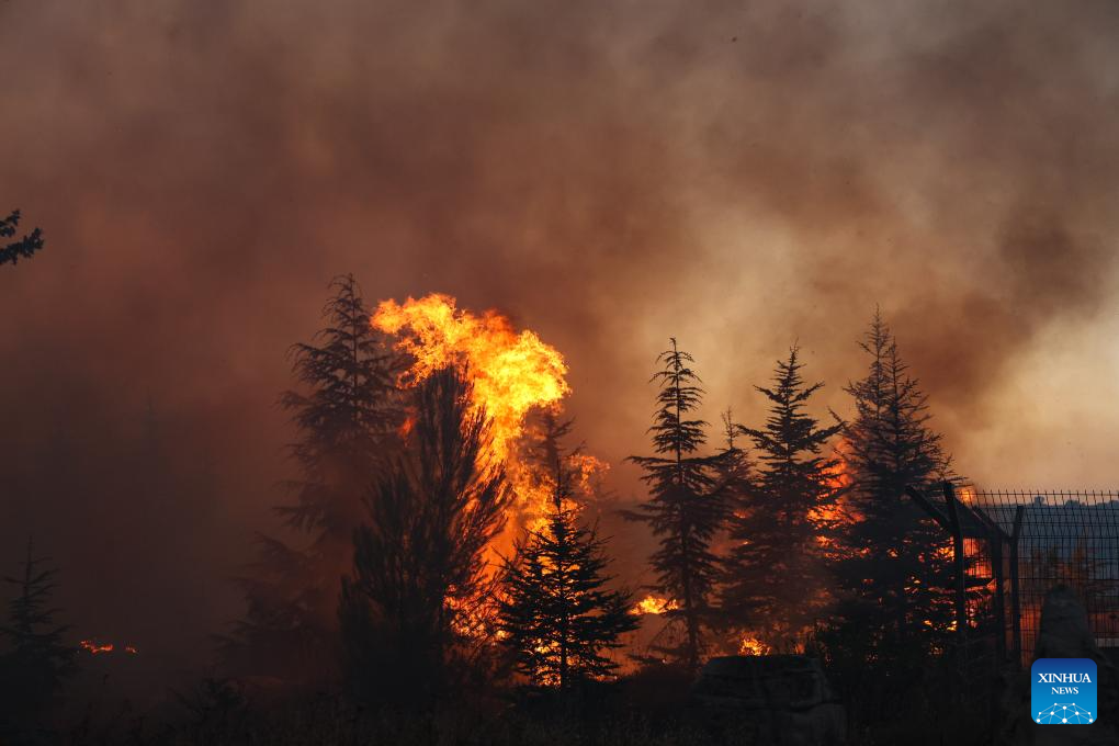 Smoke and flames rise following attacks from Lebanon, near Safed, northern Israel, on Aug. 7, 2024. The Hezbollah Military Media announced on Wednesday that the Islamic Resistance attacked several Israeli sites and gatherings. (David Cohen/JINI via Xinhua)