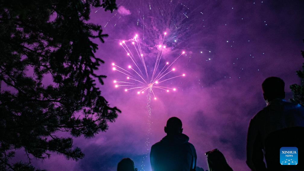 People watch a firework show in Bor, Serbia, Aug. 6, 2024.