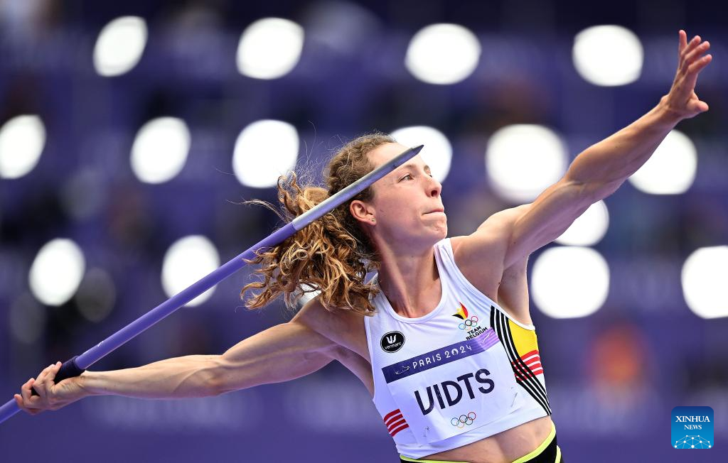 Noor Vidts of Belgium competes during the women's heptathlon javelin throw of Athletics at the Paris 2024 Olympic Games in Paris, France, Aug. 9, 2024. (Xinhua/Li Ming)