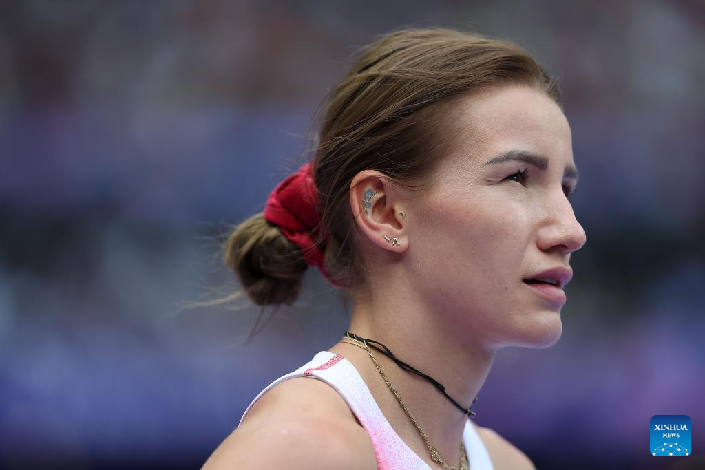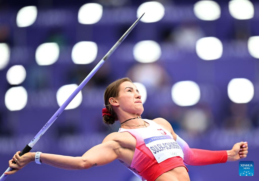 Adrianna Sulek-Schubert of Poland competes during the women's heptathlon javelin throw of Athletics at the Paris 2024 Olympic Games in Paris, France, Aug. 9, 2024. (Xinhua/Li Ming)
