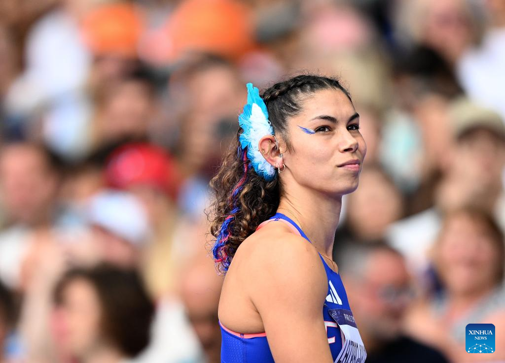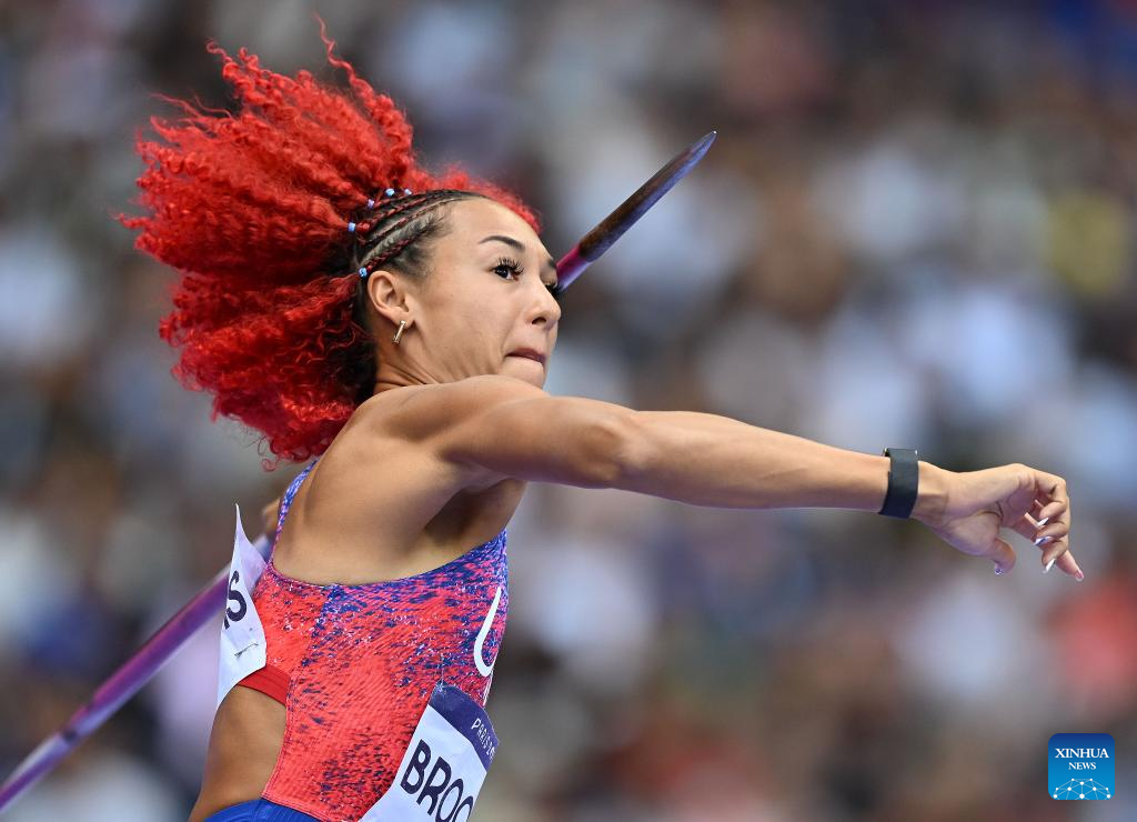 Taliyah Brooks of the United States competes during the women's heptathlon javelin throw of Athletics at the Paris 2024 Olympic Games in Paris, France, Aug. 9, 2024. (Xinhua/Song Yanhua)