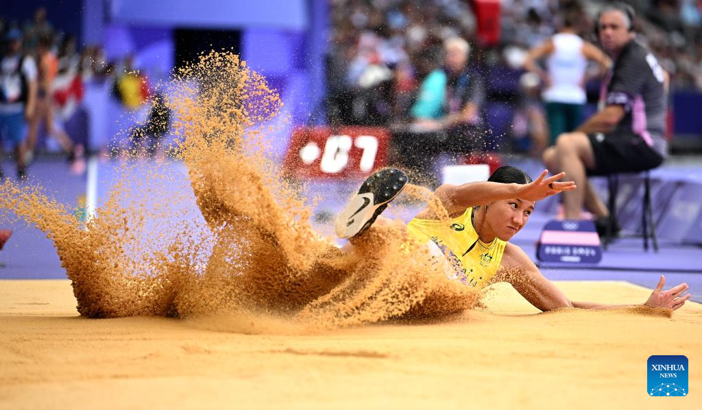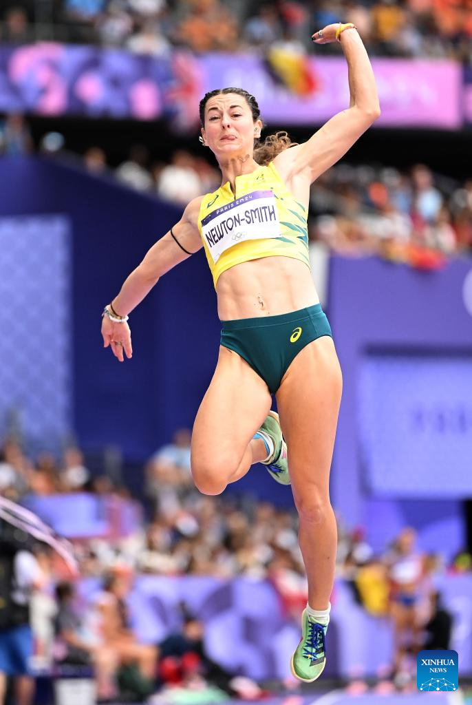Camryn Newton-Smith of Australia competes during the women's heptathlon long jump of Athletics at the Paris 2024 Olympic Games in Paris, France, Aug. 9, 2024. (Xinhua/Song Yanhua)
