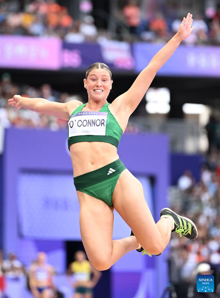 Kate O'Connor of Ireland competes during the women's heptathlon long jump of Athletics at the Paris 2024 Olympic Games in Paris, France, Aug. 9, 2024. (Xinhua/Song Yanhua)