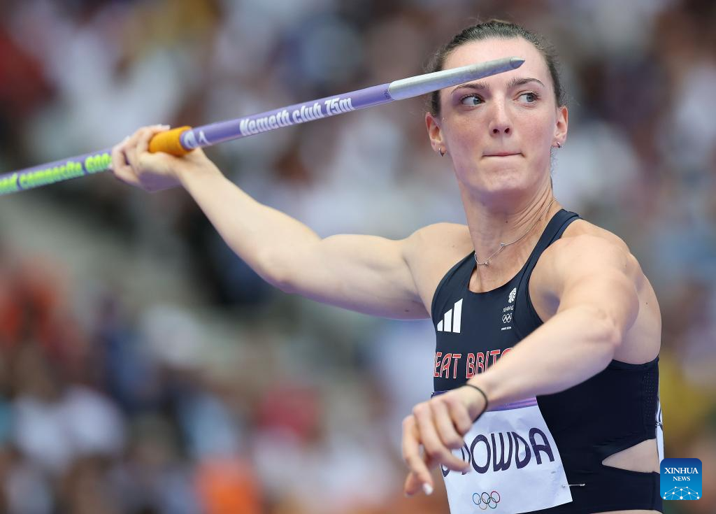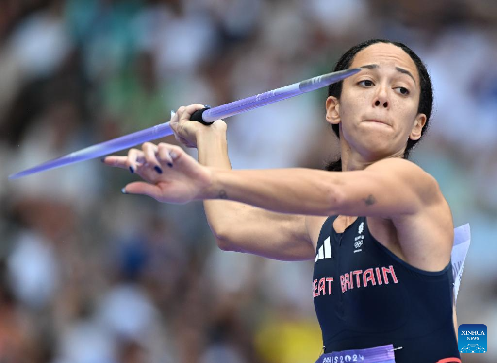 Jade O'Dowda of Britain competes during the women's heptathlon javelin throw of Athletics at the Paris 2024 Olympic Games in Paris, France, Aug. 9, 2024. (Xinhua/Li Ming)