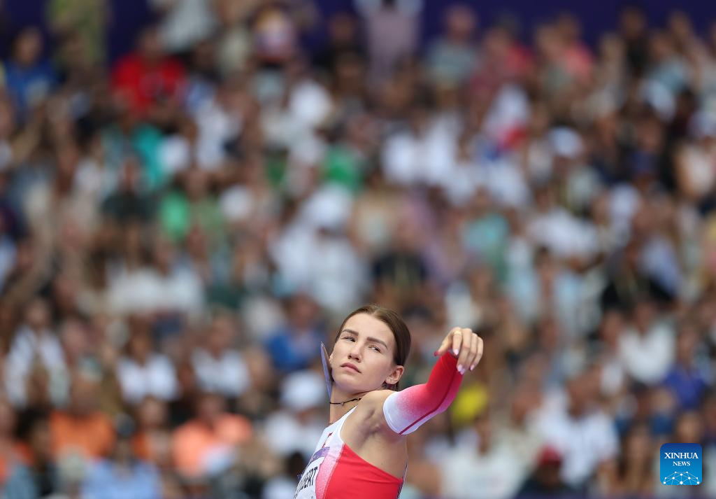 Rita Nemes of Hungary competes during the women's heptathlon javelin throw of Athletics at the Paris 2024 Olympic Games in Paris, France, Aug. 9, 2024. (Xinhua/Song Yanhua)